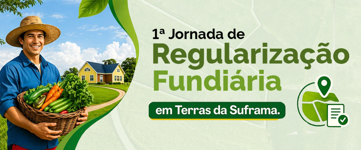 A Superintendência da Zona Franca de Manaus convida ocupantes de lotes na Área de Expansão do Distrito Industrial (AEDI) e no Distrito Agropecuário da Suframa das Áreas de Manaus e Rio Preto da Eva, especialmente produtores rurais, para participarem da 1ª Jornada de Regularização Fundiária em Terras da Suframa. O evento tem como objetivo difundir os procedimentos de regularização fundiária em terras da Suframa, identificar entre os participantes aqueles aptos à regularização e contribuir para a agilização dos processos administrativos.