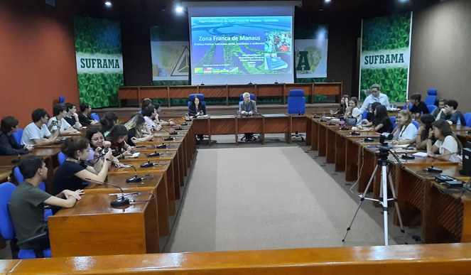 A primeira atividade foi realizada nesta quinta-feira, quando os estudantes foram apresentados à Suframa e ao modelo econômico e social de sucesso pelo superintendente Algacir Polsin.