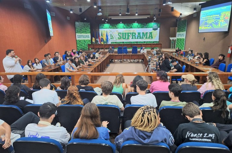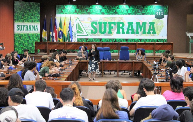 Na palestra para os estudantes, Ana Maria Souza apresentou um panorama histórico da criação da Zona Franca de Manaus e da evolução do projeto até os dias atuais, em que abriga o Polo Industrial de Manaus (PIM) com mais de 450 empresas que faturam cerca de R$ 175 bilhões e geram mais de 100 mil empregos diretos, bem como discorreu sobre as contribuições para a preservação ambiental da região e a intenção da Suframa de fomentar novas matrizes econômicas, como a bioeconomia e o turismo.