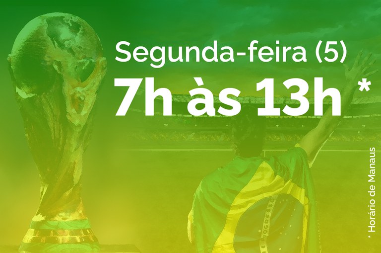 Com o 1º lugar no grupo, Seleção volta a jogar dia 5, às 15h (de Manaus) e expediente será de 7h às 13h (Arte: Fábio Alencar/Suframa)