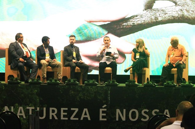 Debatedores: Alfredo K. Oyama Homma (Pesquisador da Embrapa - PA), Ricardo Ludke (Diretor da Br Arbo Gestão Florestal S/A) e Elias Moraes (Presidente do Centro de Bionegócios da Amazônia - CBA);