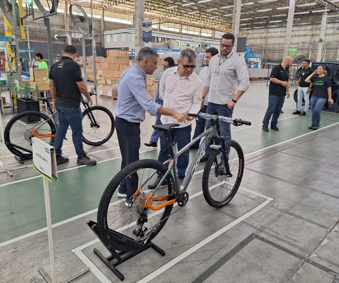 A visita abrangeu três etapas. Na primeira, conhecida como processo inicial, foram apresentados a produção do quadro em alumínio e aço, o tratamento técnico e a pintura destinada ao próprio quadro, além da montagem da roda.