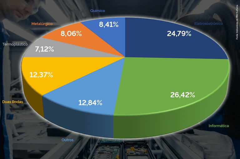 Os segmentos Eletroeletrônico, com faturamento de R$ 27,20 bilhões e crescimento de 5,63%, e Bens de Informática do Polo Eletroeletrônico, com faturamento de R$ 29,15 bilhões e crescimento de 32,86%, contribuíram com mais da metade do montante total faturado pelo PIM entre janeiro e novembro. Outros segmentos que se destacaram no período foram Químico (faturamento de R$ 9,20 bilhões e crescimento de 6,78%), Termoplástico (faturamento de R$ 7,82 bilhões e crescimento de 23,77%), Metalúrgico (faturamento de R$ 8,82 bilhões e crescimento de 16,16%) e Mecânico (faturamento de R$ 7,07 bilhões e crescimento de 20,75%).