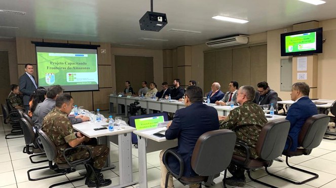 Acompanhado da alta cúpula da Suframa, o superintendente da Autarquia, Bosco Saraiva, esteve no Comando Comando Militar da Amazônia (CMA), na manhã desta quinta-feira (19), para receber informações iniciais sobre o projeto "Capacitando Fronteiras do Amazonas". A iniciativa é do Instituto Federal de Educação, Ciência e Tecnologia (Ifam), em parceria com o Exército brasileiro, e objetiva levar energia limpa a comunidades distantes do Estado do Amazonas.