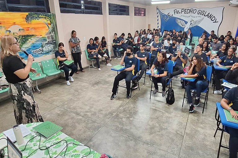 A segunda edição e terceira ação do projeto “Suframa nas Escolas” em 2023 foi realizada nesta terça-feira (19), no bairro Compensa 1, zona Oeste de Manaus. A atividade reuniu aproximadamente 70 alunos finalistas do ensino médio da Escola Estadual Padre Pedro Gislandy, considerada a pioneira, entre as instituições de ensino implantadas naquela área da cidade, mais precisamente no dia 12 de maio de 1973.