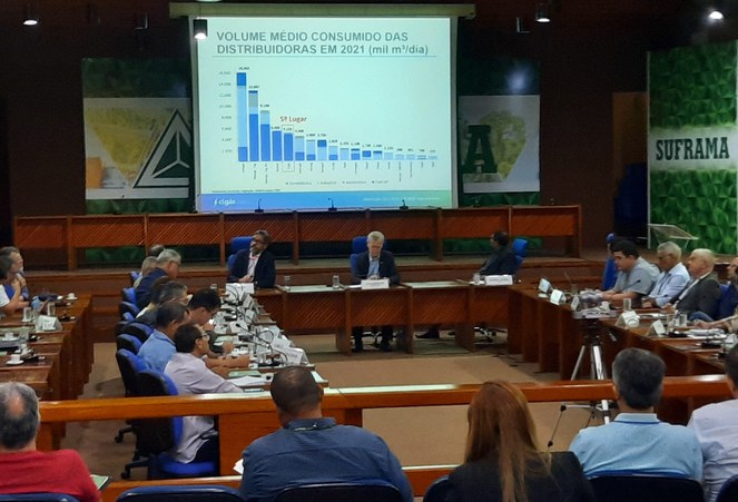 O gerente geral da Unidade de Negócios de Produção da Amazônia da Petrobras, Stênio Jayme Galvão Filho, expôs os desafios logísticos das operações realizadas no Amazonas onde funcionam 86 poços ativos (75 produtores e 11 injetores) e são produzidas 1.100 toneladas por dia de Gás Liquefeito de Petróleo (GLP), equivalente a aproximadamente 84 mil botijas de GLP por dia.