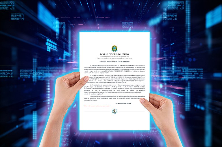 A Consulta publicada no Diário Oficial abrange dois temas ligados a PD&I (Arte: Fábio Alencar/Suframa)