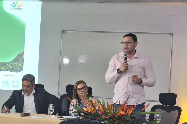Após a solenidade de abertura da 14ª Semana Acadêmica de Biologia – BioAMAZÔNIA 2023 - Ciência, Educação, Saúde e Sustentabilidade na Amazônia, o superintendente-adjunto de Projetos da Autarquia, Leopoldo Montenegro, ministrou a palestra: “Política e ações da Suframa de Incentivo à Bioeconomia da Amazônia”. O evento ocorreu na noite de segunda-feira (4), no Auditório Altair Fernandes, no Instituto de Ciências Biológicas da Universidade Federal do Amazonas (ICB/Ufam).
