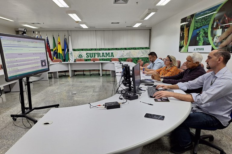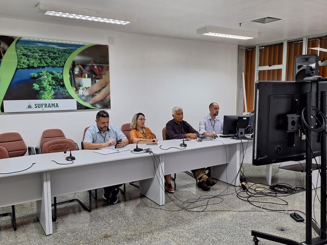 A reunião desta quinta-feira foi conduzida pelo superintendente-adjunto de Projetos, José Marques; a titular da Coordenação-Geral de Acompanhamento de Projetos Industriais (CGAPI), Yeda Sousa; o coordenador de Acompanhamento e Controle de Importação de Insumos, Rômulo Pacheco; e o coordenador de Acompanhamento de Projetos Industriais e Análises de Processos Industriais, Dave Mcclain.