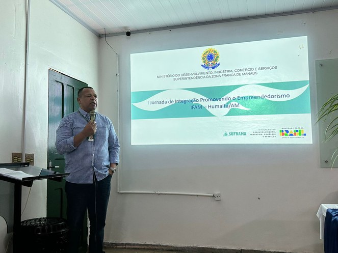 Atendendo a convite do Instituto Federal de Educação, Ciência e Tecnologia do Amazonas Campus Humaitá (Ifam/Humaitá), dois servidores da Suframa ministram palestra durante a “1ª Jornada de Integração Promovendo o Empreendedorismo no Ifam/campus Humaitá (AYTY JIPE 2023)”, que começou na terça-feira (19) e vai até esta sexta-feira (22), no município de Humaitá (a 591 quilômetros de Manaus).