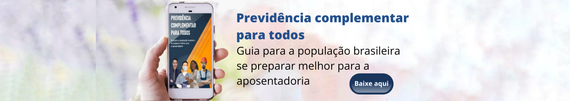 Previdência complementar para todos. Guia para a população brasileira se preparar melhor para a aposentadoria. Imagem de mão segurando o celular