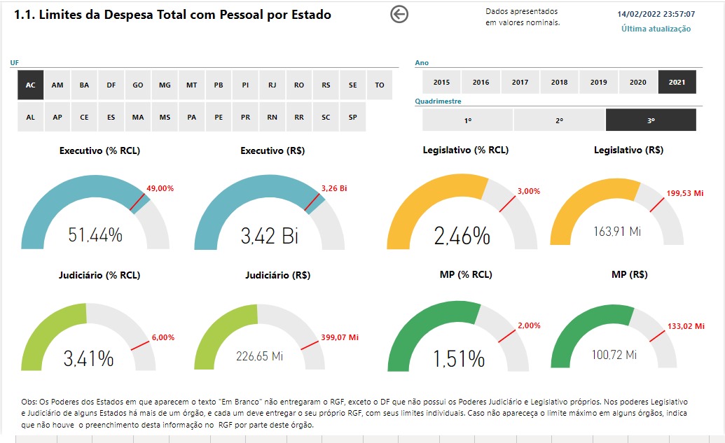 RN e AC superam limite para a despesa com pessoal em 2021, aponta RGF em Foco dos Estados