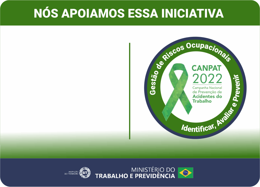 A instituição/empresa que aderir ao Selo de Apoio da CANPAT 2022 compromete-se a manter boas práticas de Segurança e Saúde no Trabalho e a combater o trabalho infantil e o trabalho análogo ao de escravo no ambiente laboral.