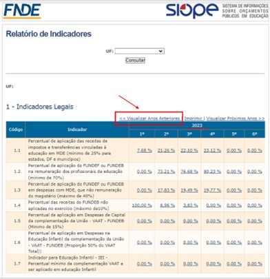 - Na tela seguinte clicar em “Visualizar anos anteriores” para acessar os indicadores do ano de referência.