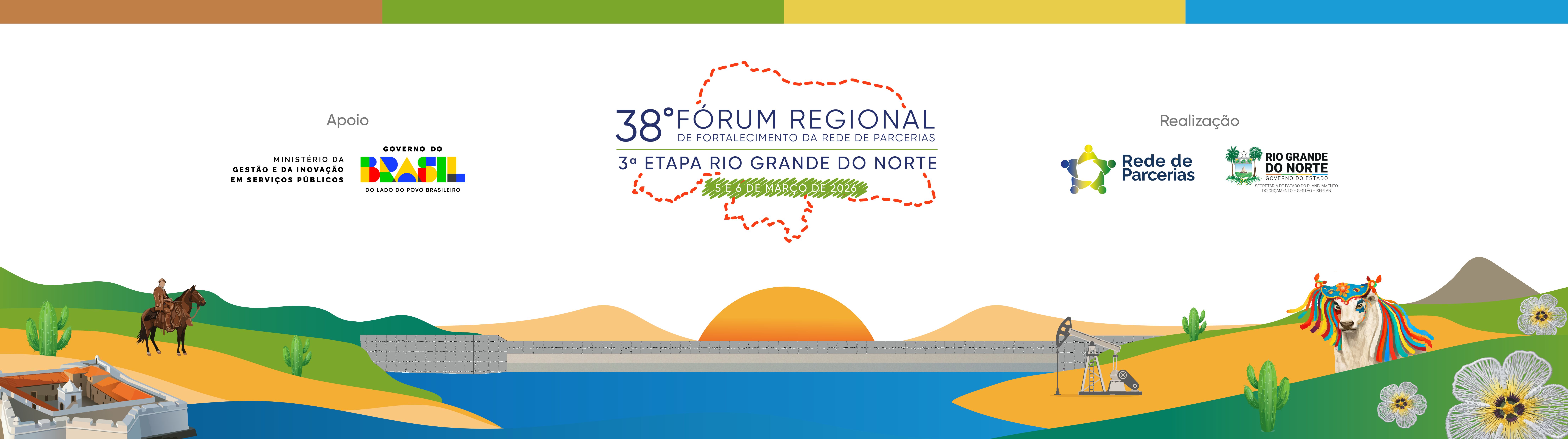 A Secretaria de Gestão e Inovação (SEGES), do Ministério da Gestão e da Inovação em Serviços Públicos (MGI), por meio desta Diretoria de Transferências e Parcerias da União (DTPAR), em parceria com o Governo do Estado do Rio Grande do Norte, por meio da Secretária de Estado do Planejamento, do Orçamento e da Gestão (Seplan) convida para o 38º Fórum Regional de Fortalecimento da Rede de Parcerias – Etapa Rio Grande do Norte.