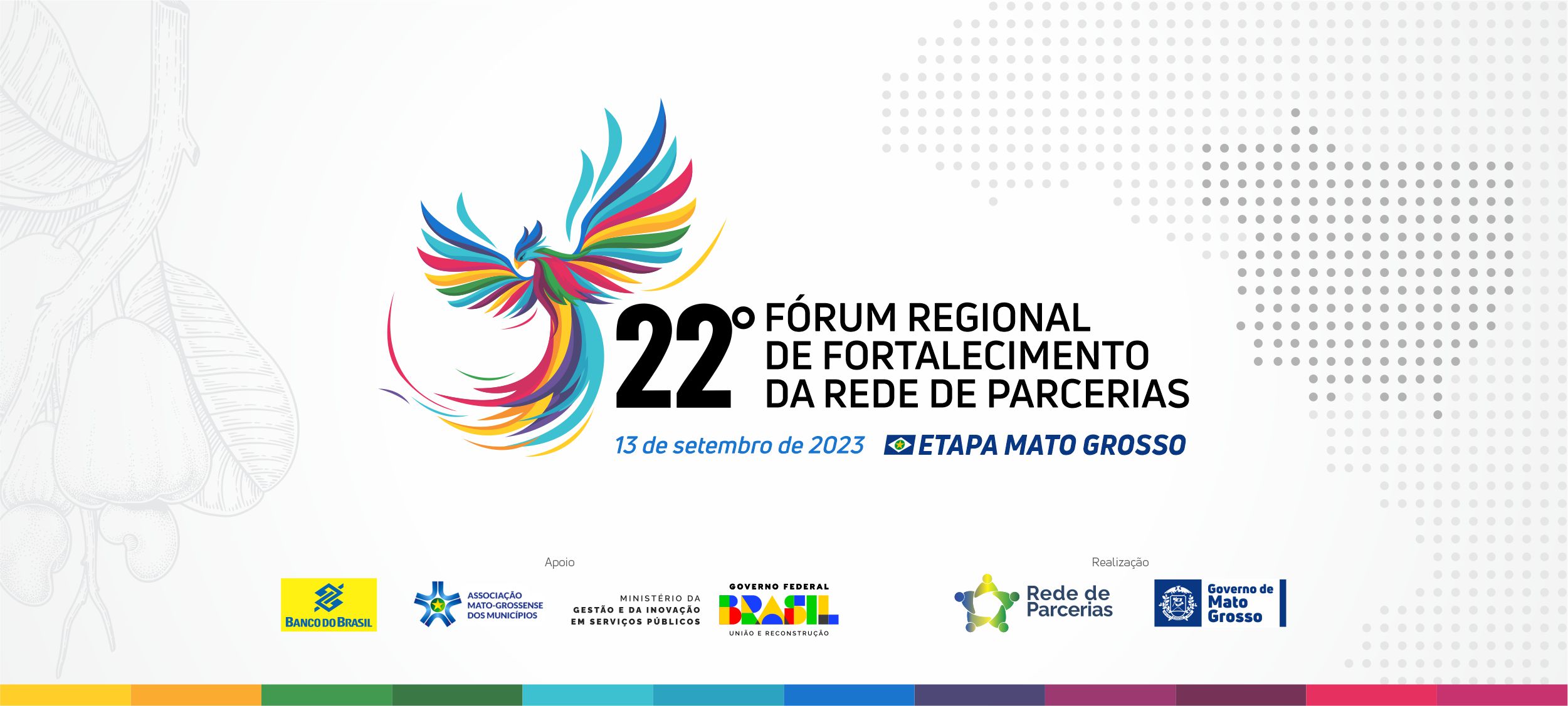 O Governo do Estado de Mato Grosso, por meio da Secretaria de Estado de Fazenda (Sefaz MT), com o apoio do Ministério da Gestão e da Inovação em Serviços Públicos, por meio da Diretoria de Transferências e Parcerias da União, promoverá o 22º Fórum Regional de Fortalecimento da Rede de Parcerias - Etapa Mato Grosso: