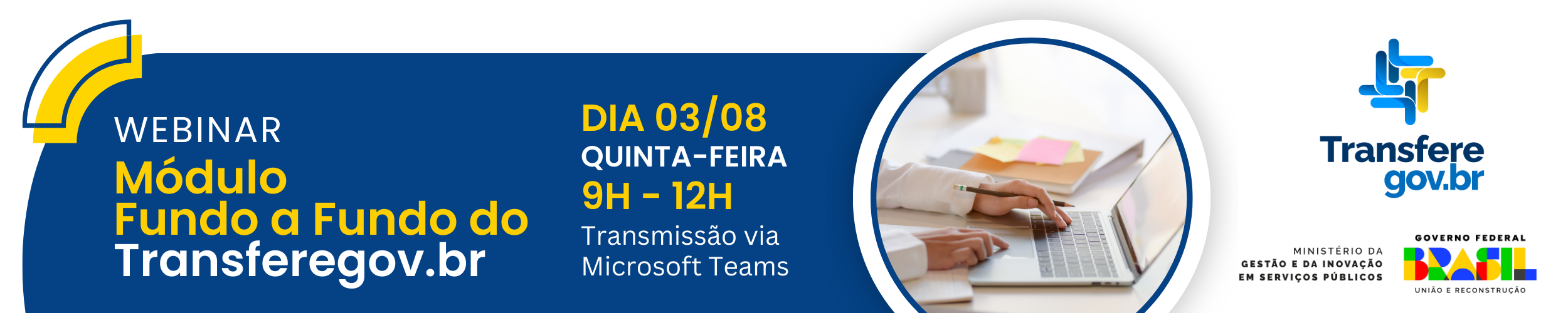 Participe para conhecer mais sobre o Módulo Fundo a Fundo do Transferegov e a sua operacionalização🗓 Dia: 03/08/2023, nesta quinta-feira