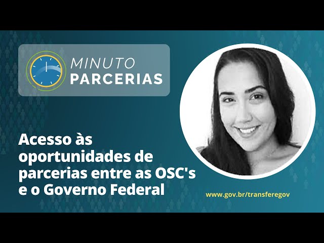 Natalia Toito Galli, da Diretoria de Parcerias com a Sociedade Civil, da Secretaria-Geral da Presidência da República, ensina neste vídeo tutorial sobre como podemos acessar as oportunidades de parcerias entre as Organizações da Sociedade Civil e o Governo Federal por meio dos Painéis Gerenciais Transferegov.br.