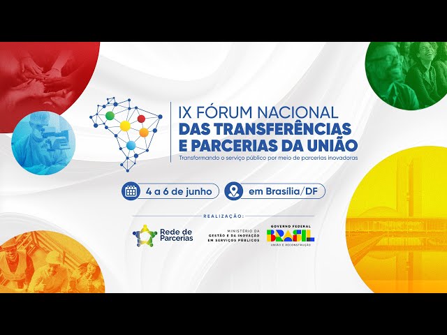 O Ministério da Gestão e da Inovação em Serviços Públicos convida a todos os interessados para participar do IX Fórum Nacional das Transferências e Parcerias da União, o tema deste ano é "Transformando o serviço público por meio de parcerias inovadoras".