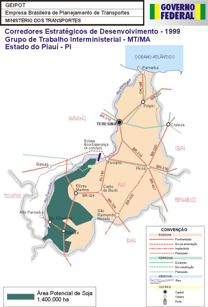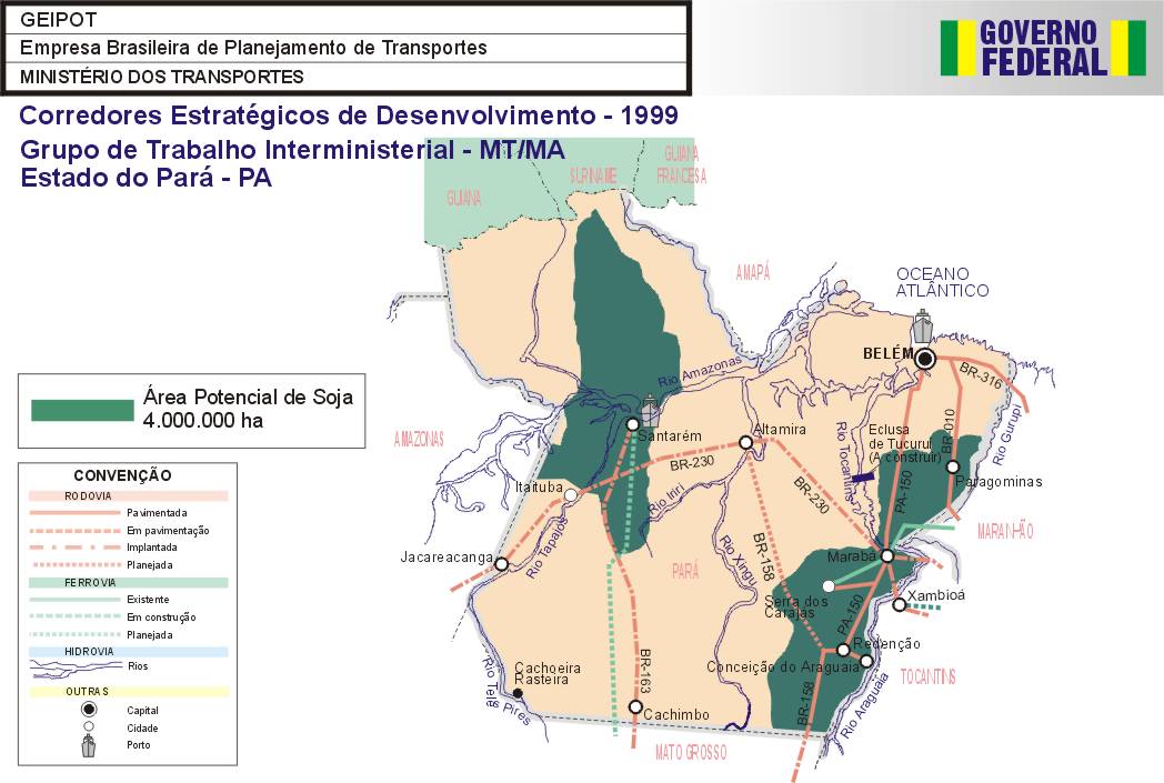 O trabalho recentemente elaborado pela Empresa Brasileira de Planejamento de Transportes – GEIPOT, intitulado “Corredores Estratégicos de Desenvolvimento”, serviu como ponto de partida e como referência para as ações do GTI.