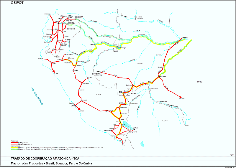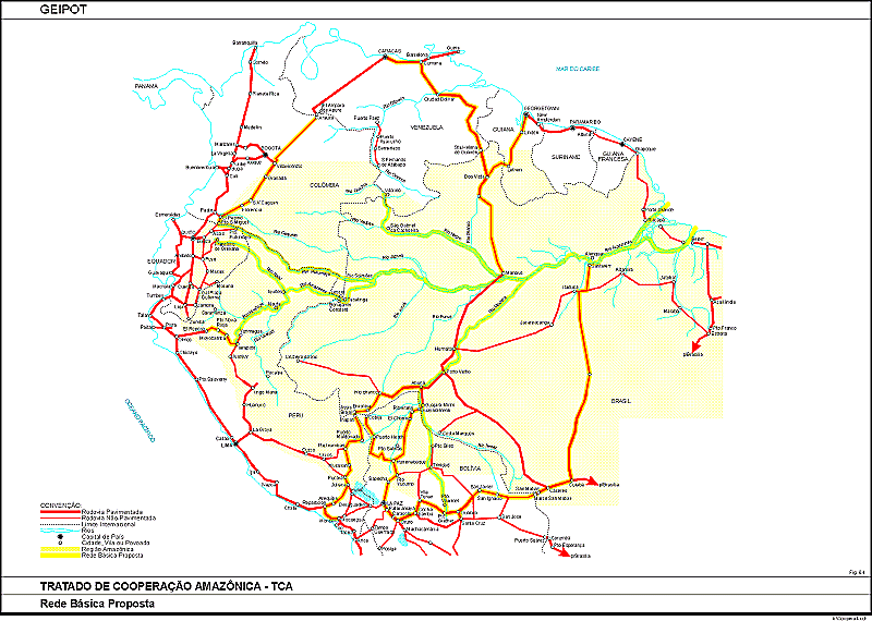 Naquela mesma ocasião, a Secretaria do Tratado dava início a extenso programa de estudos para o planejamento de longo prazo da infra-estrutura regional de transportes de interesse comum dos países-membro do TCA. Decorre dessa iniciativa a cooperação que em 1994 veio a ser solicitada ao governo brasileiro pela CETICAM - Comissão Especial de Infra-Estrutura, Transportes e Comunicações do Tratado. O atendimento dessa solicitação técnica coube ao MT/GEIPOT, que nas suas primeiras conclusões de pesquisa e análise, bem como de levantamentos de campo e consultas aos setores especializados dos governos da região, apresentou àquela Comissão o relatório Rede de Transporte Internacional para a Região Amazônica (1ª fase, fev./97). Firmada no modal hidroviário, a rede proposta deverá servir de base para o consequente planejamento e ações de cooperação mútua por parte dos países do Tratado, com vistas ao atendimento das demandas regionais de transporte.