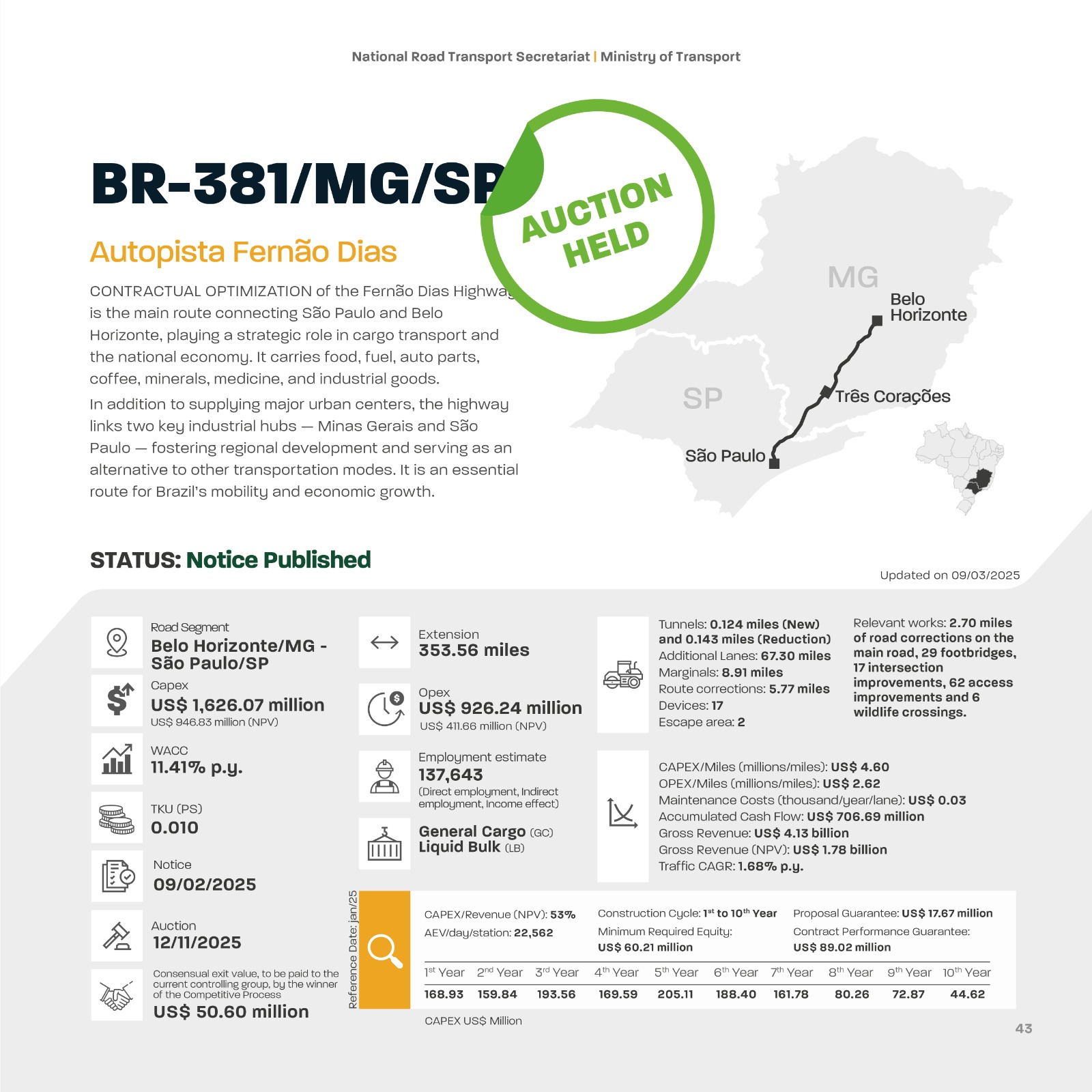 Optimization of Autopista Fernão Dias - BR-381/MG/SP