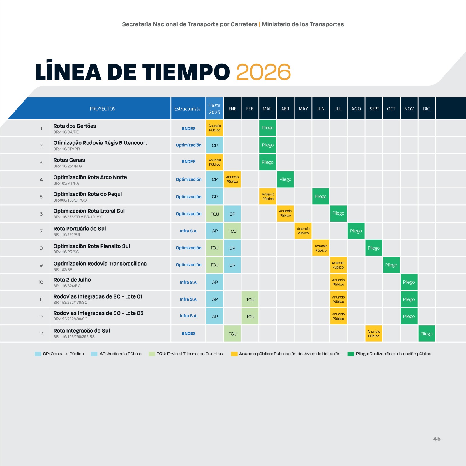 En este contexto, presentamos al mercado nacional e internacional el pipeline de proyectos de concesión del Gobierno Federal, destacando las oportunidades de inversión en proyectos viales en Brasil.