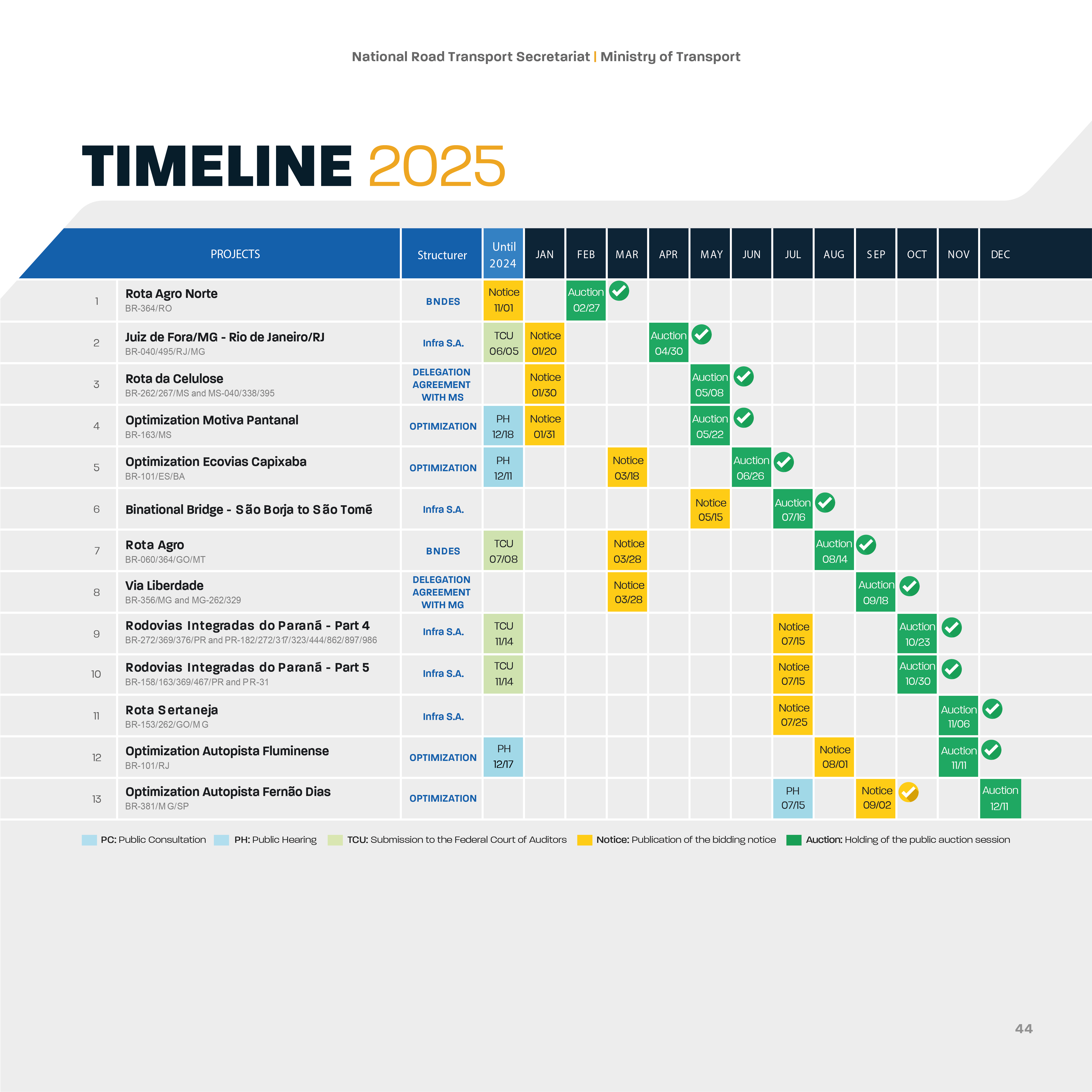 From this perspective, we hereby present the Brazilian Federal Government's pipeline of concession projects to the national and international market, highlighting investment opportunities in highway projects in Brazil.