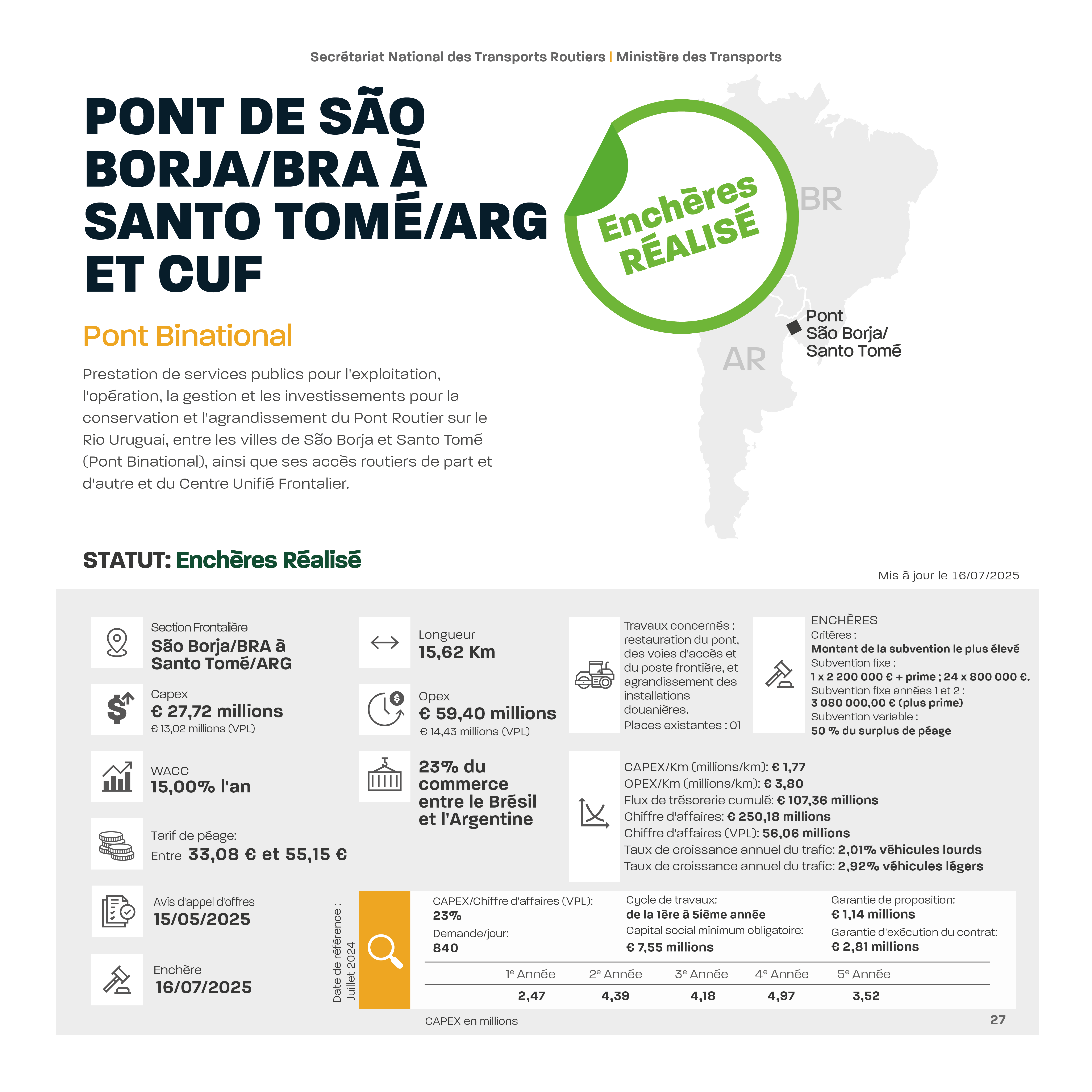 Ponte de São Borja/BR à Santo Tomé/AR e Centro Unificado de Fronteira (CUF) - FR