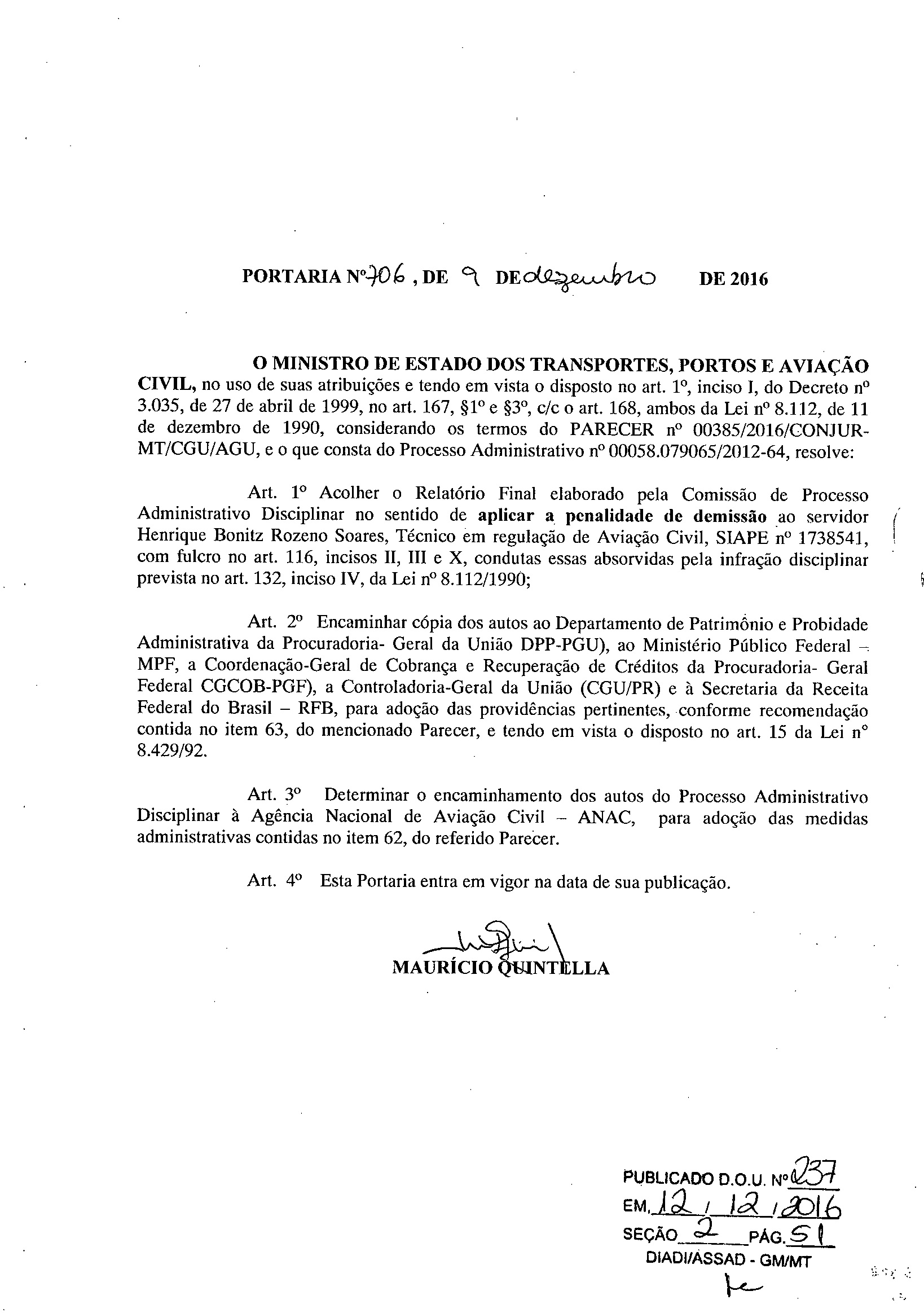 | 18 | 00058.079065/2012-64 | 00058.079065/2012-64 | Portaria nº 706 | DOU nº 237 12/12/16 |