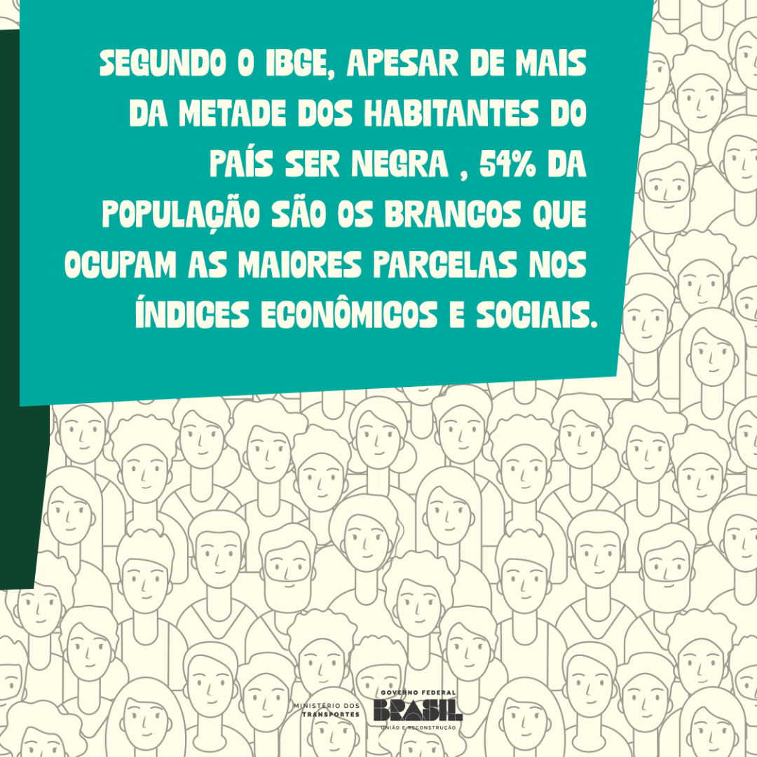 O Dia da Consciência Negra, celebrado em 20 de novembro, existe para reforçar a importância da identidade negra no mundo e lembrar que essas pessoas existem e precisam ser reconhecidas e respeitadas todos os dias e o Ministério dos Transportes reafirma nesse mês, o compromisso com a promoção da igualdade e inclusão nos transportes, construindo um setor mais diverso e representativo.
