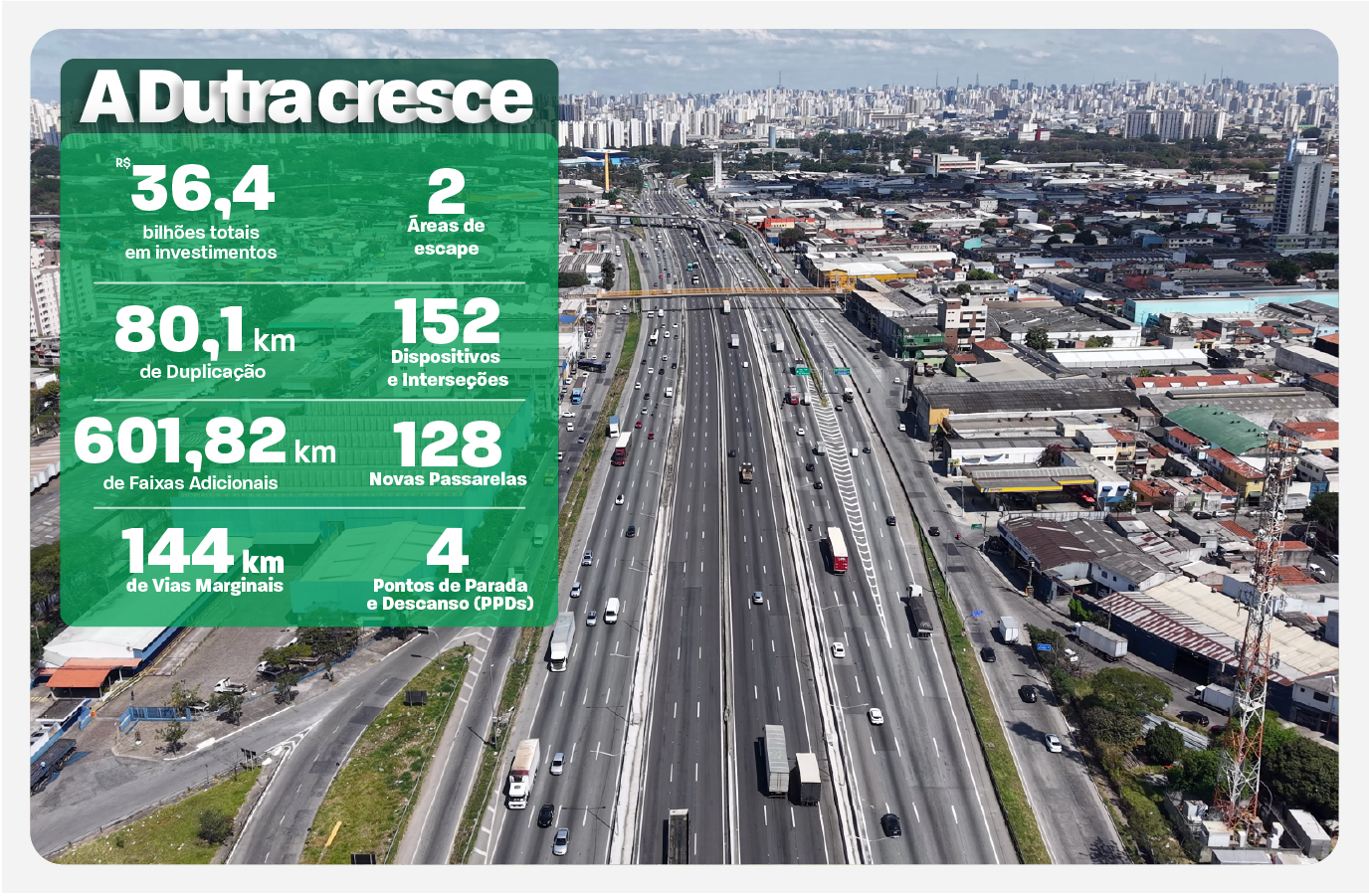 A concessão da Via Dutra integra a retomada dos investimentos em rodovias no Brasil. Nos últimos três anos, o Ministério dos Transportes realizou 22 leilões rodoviários, totalizando cerca de 18 mil quilômetros de estradas concedidas e R$247 bilhões em investimentos.