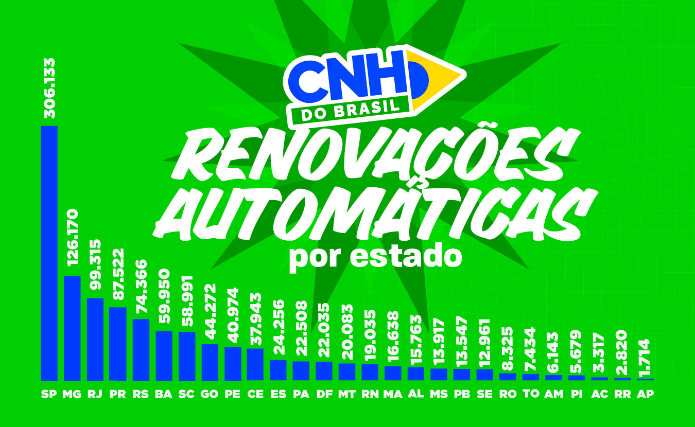 As regiões Sudeste e Sul concentram o maior volume de renovações automáticas da CNH registradas até o momento. Entre os estados, São Paulo lidera o ranking, seguido por Minas Gerais e Rio de Janeiro.