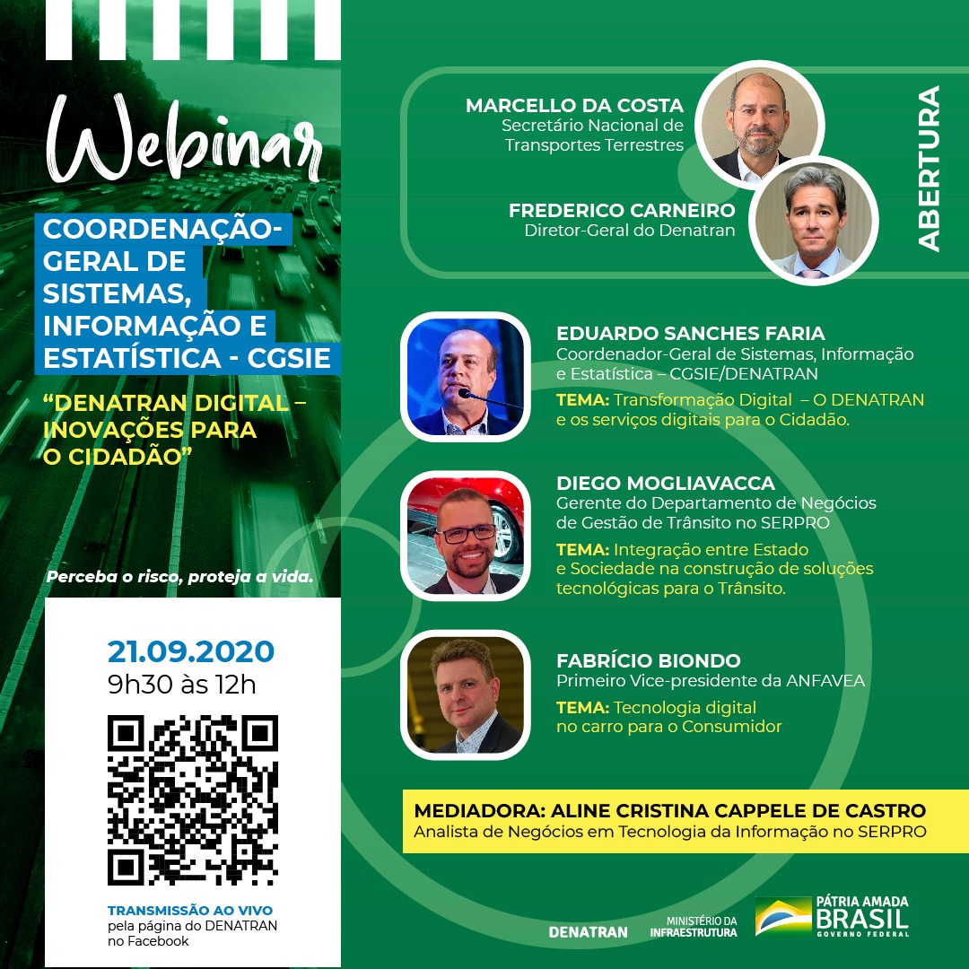 Além disso, nos eventos da SNT 2020 visamos mostrar à sociedade todos os avanços trazidos pela transformação digital proposta pelo Governo Federal, no âmbito do Denatran, as quais buscam facilitar e desburocratizar a vida dos cidadãos.