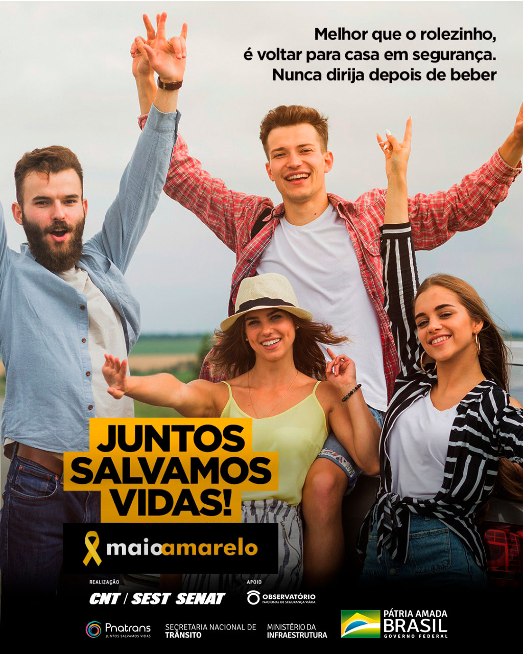Apoiadores: Polícia Rodoviária Federal (PRF), Departamento Nacional de Infraestrutura de Transportes (Dnit), Agência Nacional de Transportes Terrestres (ANTT), Ministério da Cidadania/Secretaria Nacional de Cuidados e Prevenção às Drogas (Senapred), Associação Brasileira dos DERs (ABDER) e Associação Nacional dos Detrans (AND).
