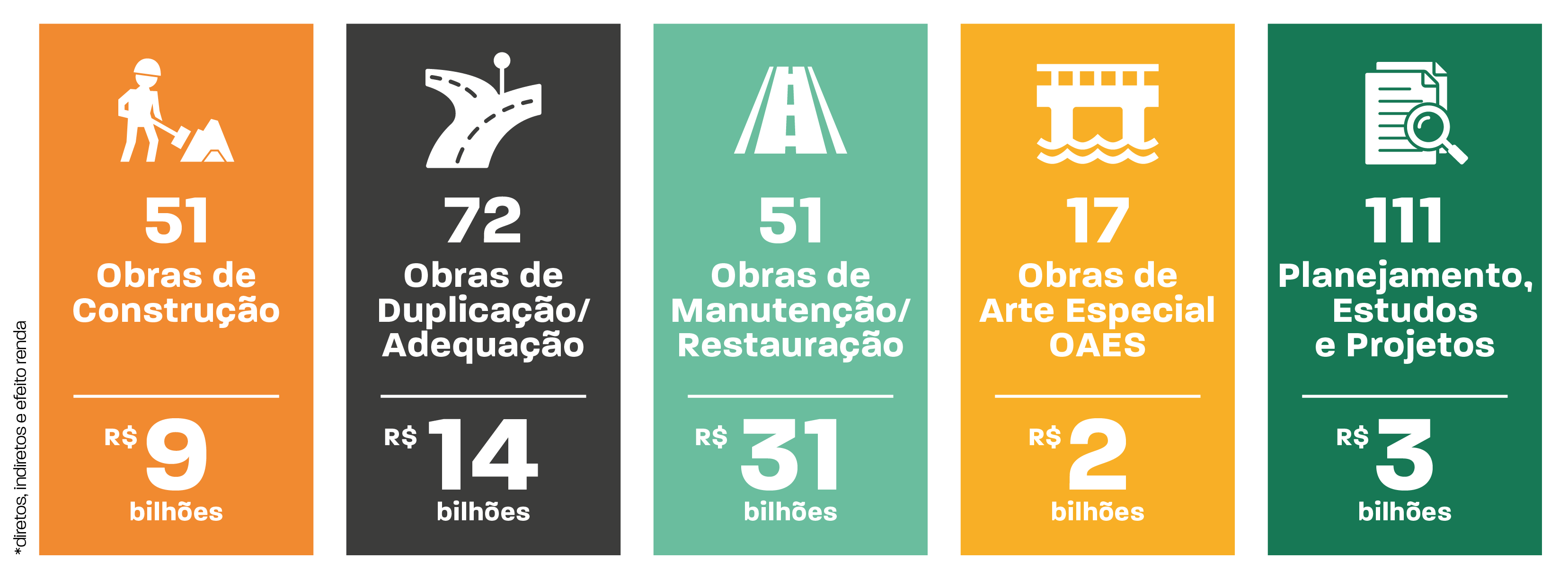 O Programa de Aceleração do Crescimento (PAC) é uma iniciativa do governo brasileiro que visa fomentar o desenvolvimento econômico do país através de investimentos em infraestrutura e outras áreas estratégicas, e em 2023, concluiu mais de 20 obras em rodovias federais, além dos leilões realizados para concessões de 1.077 kms de rodovias no Paraná com valor estimado de investimento de R$ 30 bilhões ao longo de 30 anos. Em todas as regiões do país ainda há 302 empreendimentos entre obras e projetos, existindo um investimento desde 2023 no montante de 80 bilhões, se estendendo ao longo do ano de 2026, segundo os dados do Departamento Nacional de Infraestrutura de Transportes (DNIT).