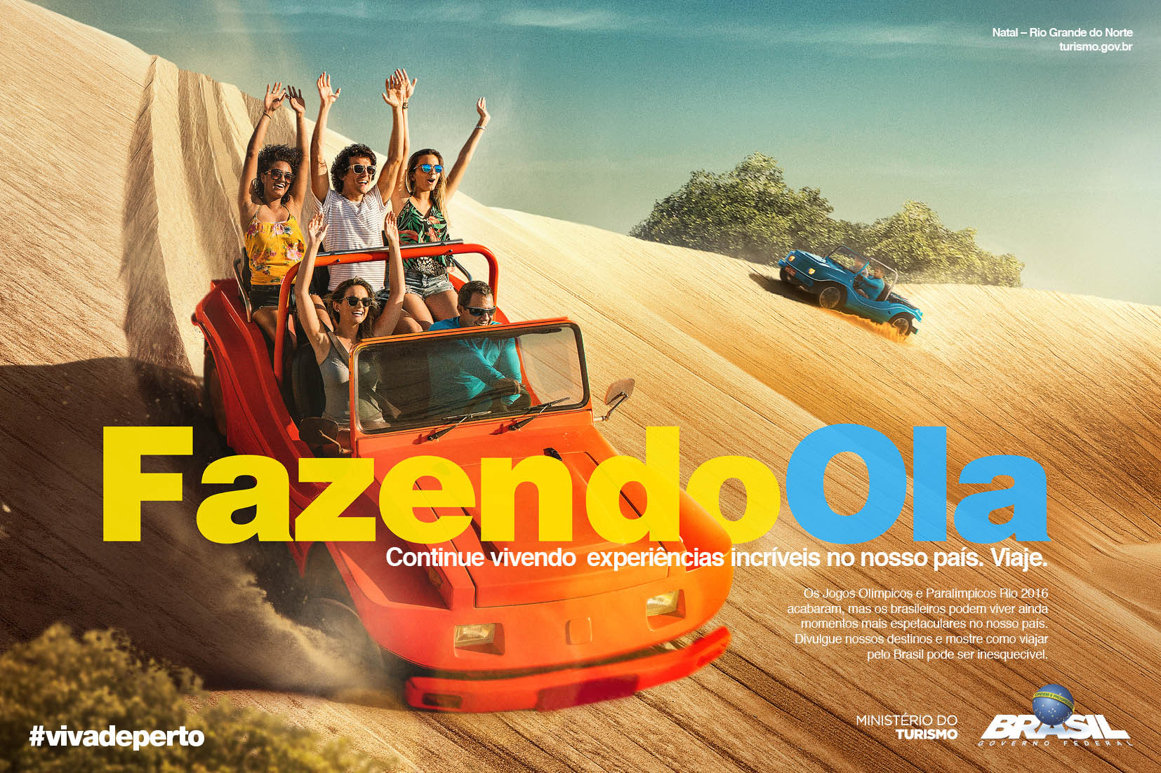 Tornar as viagens mais marcantes, com experiências inesquecíveis. Esta é a proposta da campanha do Ministério do Turismo de estímulo às viagens pelo próprio país. Nos vídeos em que o ecoturismo e as praias do Brasil estão em destaque, os personagens interagem intensamente com o cenário, em tirolesas e em águas calmas do litoral do Brasil.