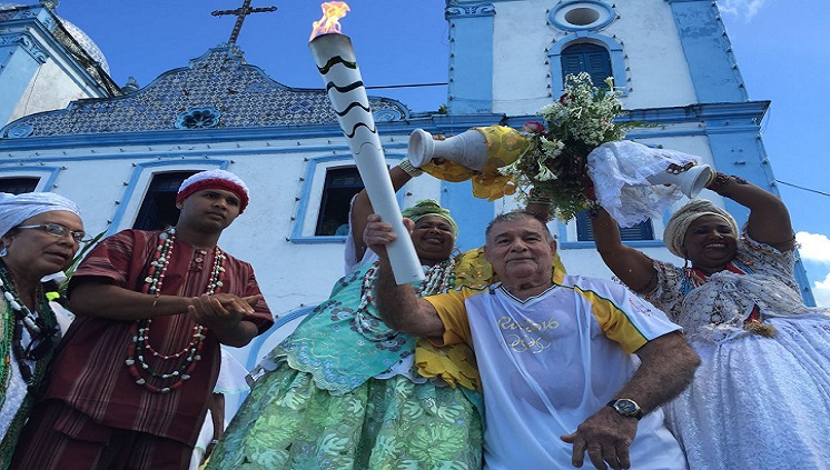 No Alto do Amparo, as baianas cantavam e animavam moradores e visitantes com danças e muita música. Do outro lado, a capoeira de Angola batia seus tambores e berimbaus e os grupos iam se revezando na dança de tradições africanas. Quando a chama chegou, uma multidão se reuniu e disputava um lugar próximo ao símbolo olímpico.