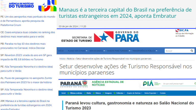 A área dedicada à divulgação de notícias sobre o turismo nos estados, municípios e Distrito Federal é uma parceria inédita do Ministério do Turismo em conjunto com o Fórum Nacional de Secretários e Dirigentes Estaduais de Turismo (Fornatur) e a Associação Nacional dos Secretários e Dirigentes Municipais de Turismo (Anseditur).