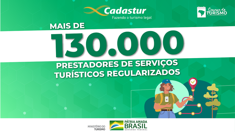 Na semana em que se comemora o Dia Mundial do Turismo (27.09), o setor alcança uma importante conquista no país: o Brasil atingiu a marca de mais de 130 mil prestadores de serviços turísticos regularizados no Cadastur, o cadastro nacional do Ministério do Turismo que reúne empresas e profissionais do ramo. O número configura um recorde de registros, representando um aumento de mais de 100% em relação a 2017.
