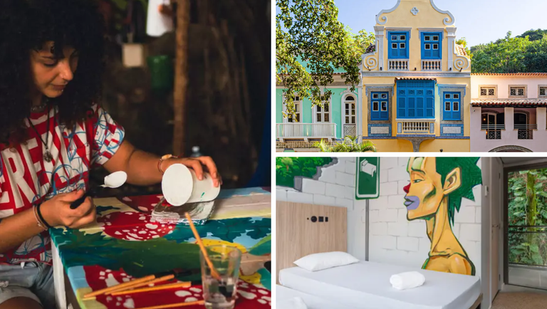 JO&JOE RIO - Localizado no icônico Largo do Boticário, ao lado da Floresta da Tijuca, o hostel transforma sustentabilidade em prática cotidiana. Livre de plásticos, utiliza materiais biodegradáveis e incentiva os hóspedes a devolverem copos ecológicos durante seus eventos culturais. Mais de 80% dos produtos de limpeza possuem certificação verde (ABNT), e a gestão de resíduos é feita por especialistas. Além disso, os hóspedes podem participar de limpezas de praia ou explorar a biodiversidade da floresta, integrando sua estadia à preservação do entorno.