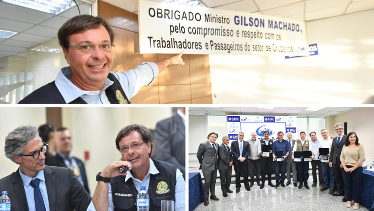 Durante a passagem pelo Porto de Santos, o ministro do Turismo e sua comitiva foram aplaudidos pelos funcionários do local, que colocaram faixas pelo prédio agradecendo os esforços pela volta dos cruzeiros e a manutenção de centenas de empregos na Baixada Santista e de milhares de postos de trabalho por todo o Brasil. Ao final da reunião, o ministro Gilson Machado Neto e o presidente da Embratur, Carlos Brito, foram homenageados com placas pela colaboração com o setor.