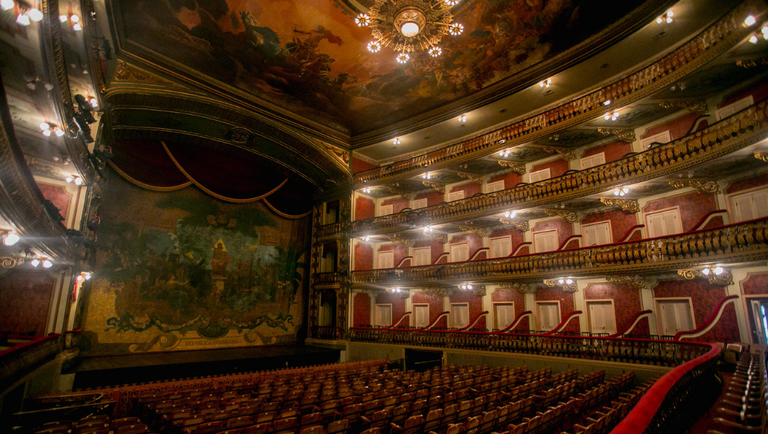 Localizado em Belém (PA), o monumento foi fundado em 1878 durante o período áureo do Ciclo da Borracha. Foi a primeira casa de espetáculos construída na Amazônia e tem características grandiosas: 1.100 lugares, acústica perfeita, lustres de cristal, piso em mosaico de madeiras nobres, afrescos nas paredes e teto, dezenas de obras de arte, gradis e outros elementos decorativos revestidos com folhas de ouro.