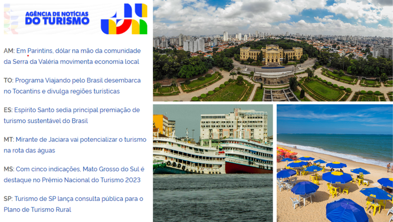 O Ministério do Turismo criou, dentro do Portal do MTur, uma área dedicada à divulgação de notícias sobre o turismo nos estados, municípios e Distrito Federal. A parceria inédita conta com o apoio do Fórum Nacional de Secretários e Dirigentes Estaduais de Turismo (Fornatur) e da Associação Nacional dos Secretários e Dirigentes Municipais de Turismo (Anseditur). O objetivo é valorizar as potencialidades regionais, dando visibilidade as diversas experiências turísticas que o Brasil oferece – sol e praia, náutico, ecoturismo, afroturismo, de base comunitária.