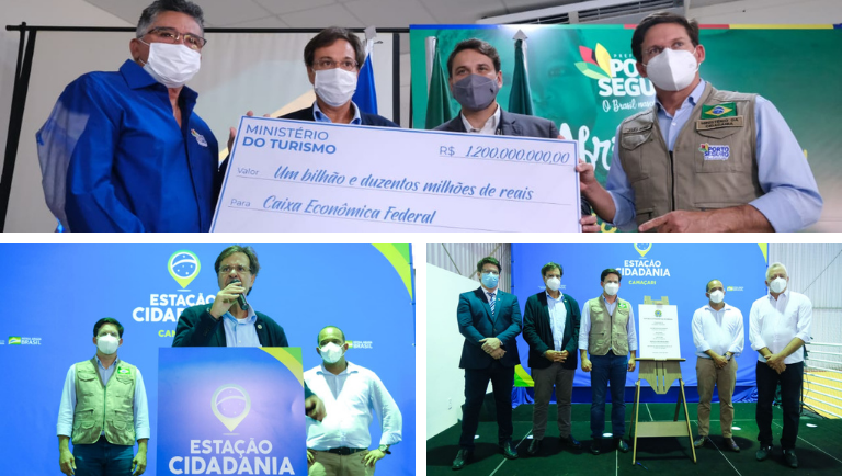 ENTREGAS - O evento em Serrinha encerra a agenda de compromissos do ministro Gilson Machado Neto e do secretário especial da Cultura, Mário Frias, na Bahia. N a últim a sexta-feira (09.04), Machado Neto oficializou o repasse de R$ 1,2 bilhão à Caixa Econômica Federal e de R$ 32 milhões à Agência de Fomento do Estado da Bahia ( Desenbahia ) para a oferta de empréstimos do Fundo Geral de Turismo ( Fungetur ), ampliando a oferta de crédito ao setor em meio à pandemia no estado.