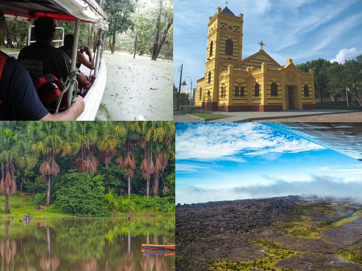 Da esq. para dir. em sentido horário: Manaus. Boa Vista, Presidente Figueiredo e Monte Roraima. Créditos: MTur